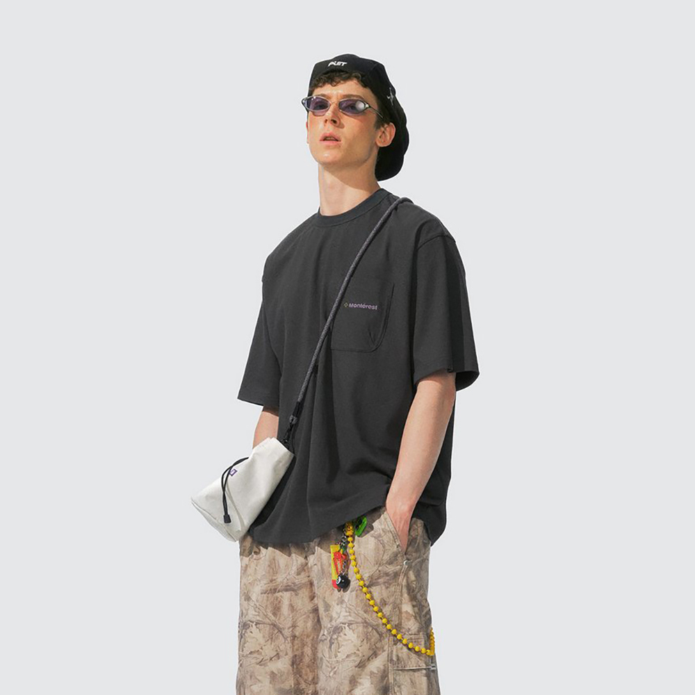 Футболка свободного кроя из плотной хлопковой ткани с винтажным принтом на спине, а на груди - карман с вышивкой.