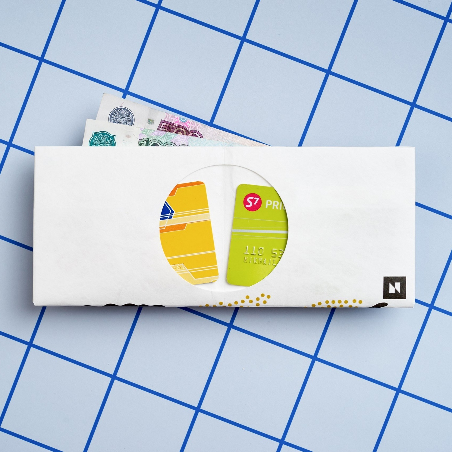 и двумя карманами для карт. Этот материал объединил в себе свойства бумаги, плёнки и ткани, поэтому изделие прочное, лёгкое и не боится воды.