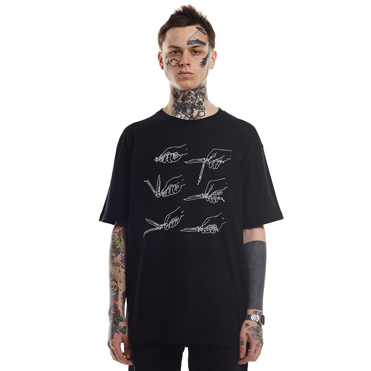 Модель отличается классическим прямым кроем и комфортным круглым вырезом из эластичной ткани. Изделие выполнено из натурального материала с приятной текстурой, обеспечивающей комфорт в повседневной носке. Футболка ВОЛЧОК Балисонг сочетает в себе стиль и качество, дополнена оригинальным принтом методом шелкографии