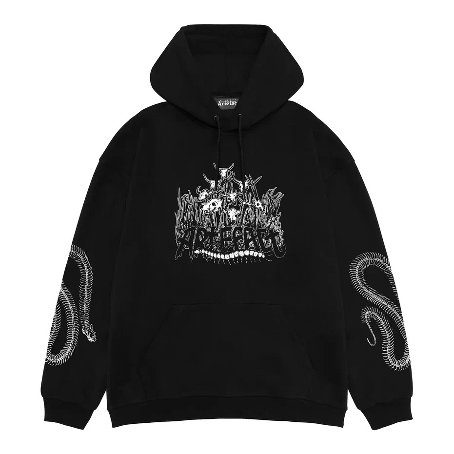 Толстовка увеличенного размера с удобным карманом-кенгуру и объемным капюшоном, оснащенным шнурками для регулировки. Манжеты и низ выполнены из эластичной ткани, обеспечивающей комфортную посадку. Худи ATF Bones отличается качественным принтом, выполненным шелкографией, и усиленной горловиной с жаккардовой этикеткой
